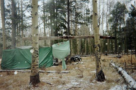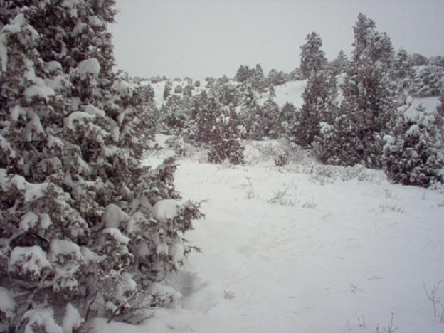 It was snowing heavily as the blaze orange-clad hunter climbed the aspen